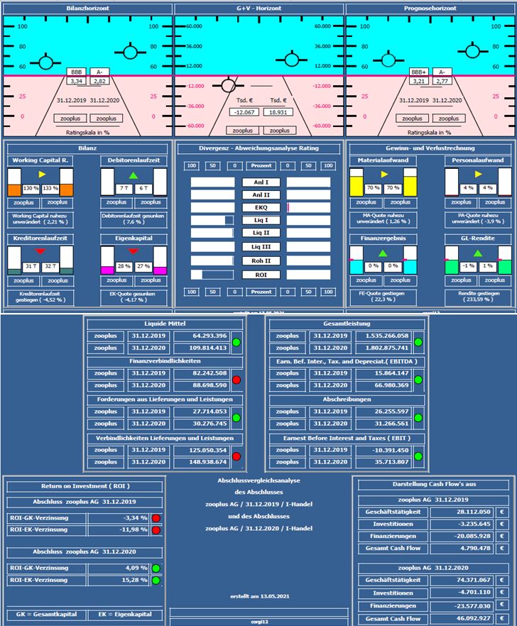 Um die Entwicklung aufzuzeigen, wurde der Jahresabschluss 2019 mit dem Jahresabschluss 2020 verglichen ( vor Corona und 10 Monate in Corona ). Häufiger wird angemerkt, warum Auswertungen mit alten Daten präsentiert werden. Bei den von mir erstellten Kurzanalysen handelt es sich um ein längerfristiges Projekt bei dem zunächst vorpandemische, danach dann inpandemische und zum Schluß nachpandemische Zeiträume dargestellt werden, um den Einfluß von Corona auf Unternehmen/Branchen zu dokumentieren.