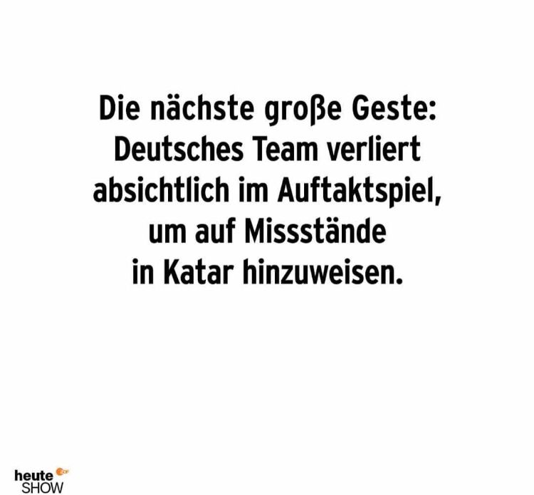 .. aber deswegen sind sie doch wohl nicht extra nach Katar geflogen? Ich dachte der Grund wäre um Fußball zu zaubern und natürlich mit vollem Einsatz (gleichsam wie mit dem der Binde) die Gegner schwindelig zu spielen und da mittels Torreigen zu brillieren!