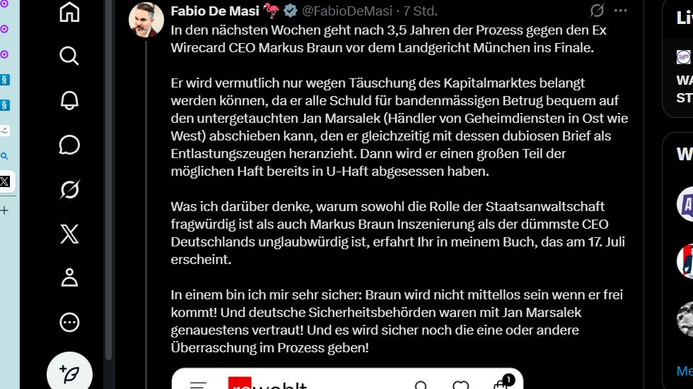 In meinem Buch werdet Ihr erfahren wie Jan Marsalek eine Vernehmung im Wirecard Untersuchungsausschuss live verfolgte und sich echauffierte, dass sich ein früherer ranghoher CDU-Politiker nicht an „Vereinbarungen“ hielt!