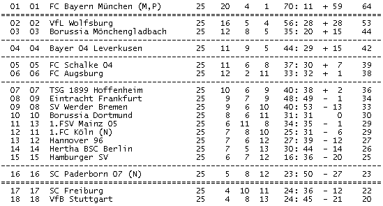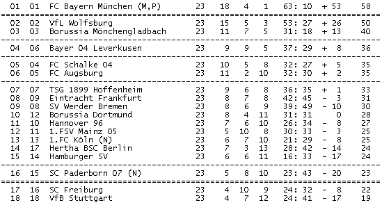 Endstand 2:2, und das nach einer 2:0 - Führung für BMG. Nächste Woche kommt Hannover, danach wird es heftig: Bayern, Dortmund, Leverkusen, Wolfsburg und Co. werden hohe Hürden sein. Wenn man bis dahin nicht genug Punkte gesammelt hat, wird es eng im Kampf um die Europapokalplätze.