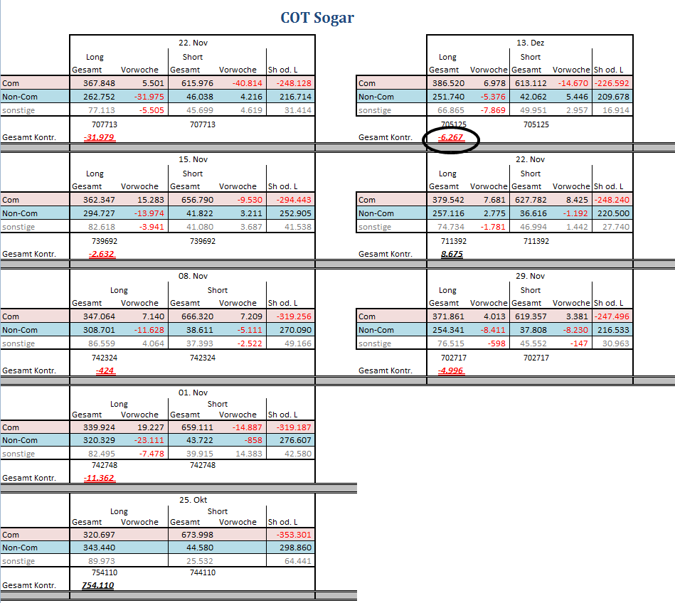 Sind nicht mehr so von long überzeugt wie Ende Oktober. Die Com sichern sich weniger gegen Short ab und mehr gegen long, rechnen also mit short.