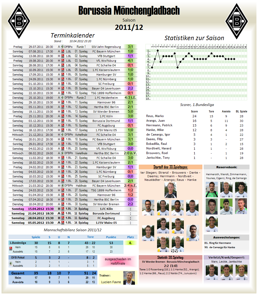 42 1.BL Spiele.. 21 Siege, 10 Unentschieden, 11 Niederlagen.. bei 59:31 Toren