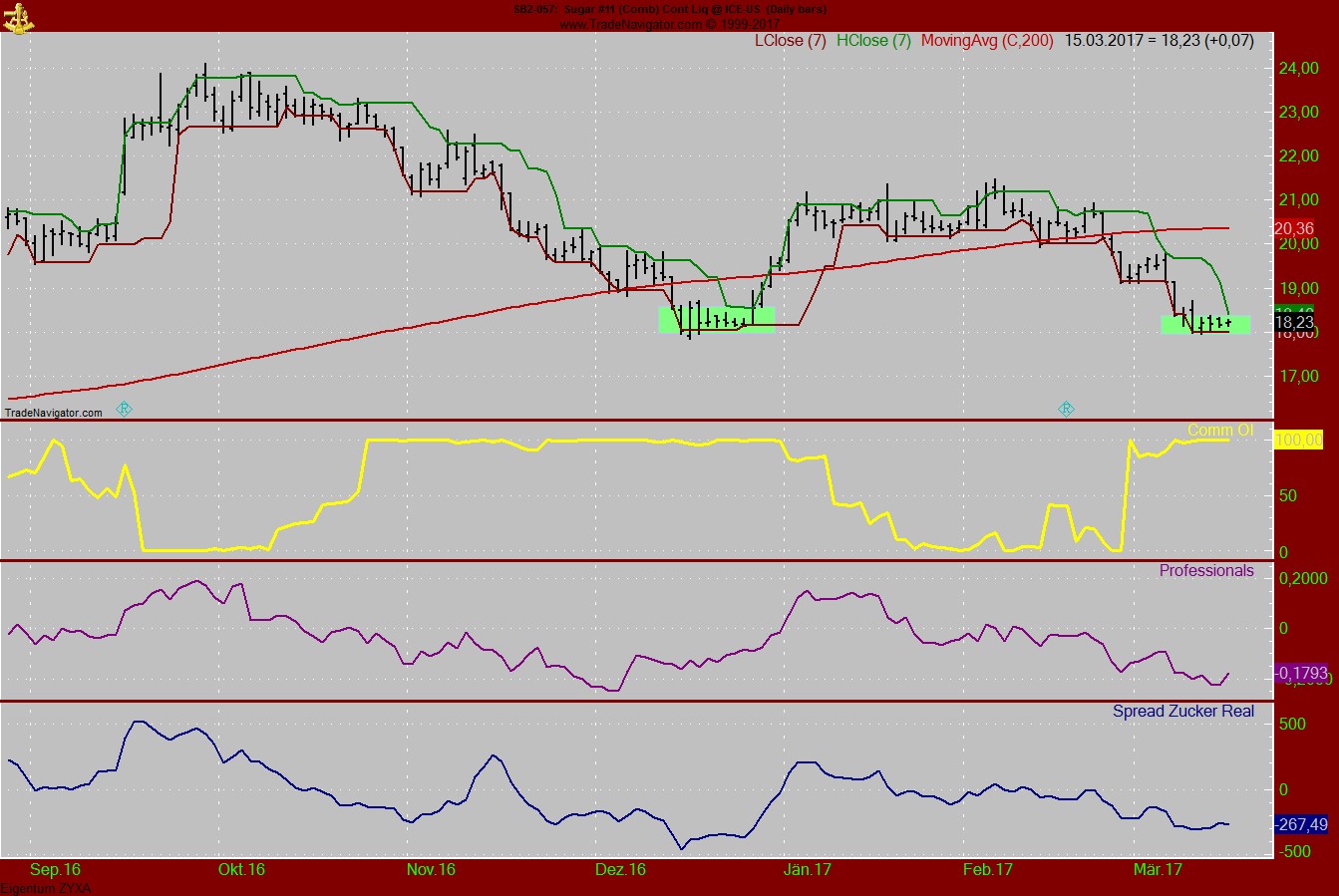 Ich gehe davon aus, dass der Zuckerpreis in Kürze auf ca. 19 ct. steigt. Mit einer zweifachen Hebelwirkung kann man damit schon einen ganz guten Trade machen. Wer sieht das auch so wie ich?