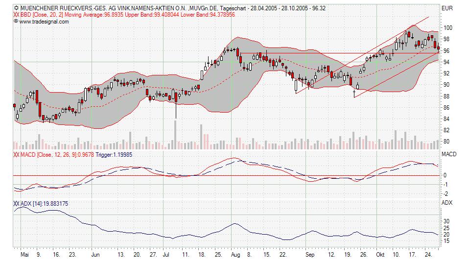 den Filter mal wieder vergessen *gg* Macht aber nix, dafuer füg ich Euch ein Update zu Münchner Rück rein, bis jetzt läuft´s nach Plan... Wollte heute nachkaufen aber Limit hat nicht gezogen .. Momentum mit Kaufsingal, Bollinger eng zusammen, spricht für baldige Kursbewegung die Richtung kann für mich nur oben sein, Momentum weist auf schon steigende Kurse hin. Mal weiter beobachten ...