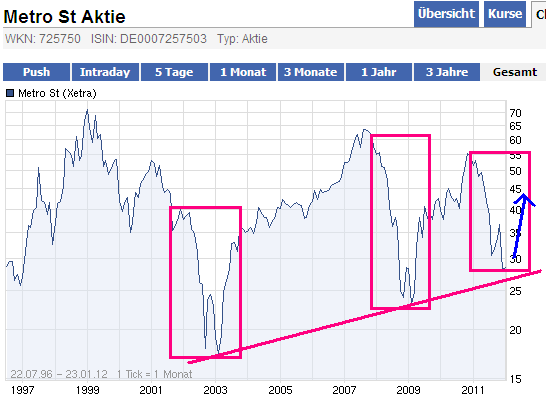 ich halte einen einstieg aktuell nicht für die schlechteste idee. dividende sollte ziemlich sicher sein. im kurs ist schon vieles eingepriesen und wie zu lesen ist (focusmoney) ist der börsenwert allein durch die cash&carry märkte samt immobilien abgedeckt..