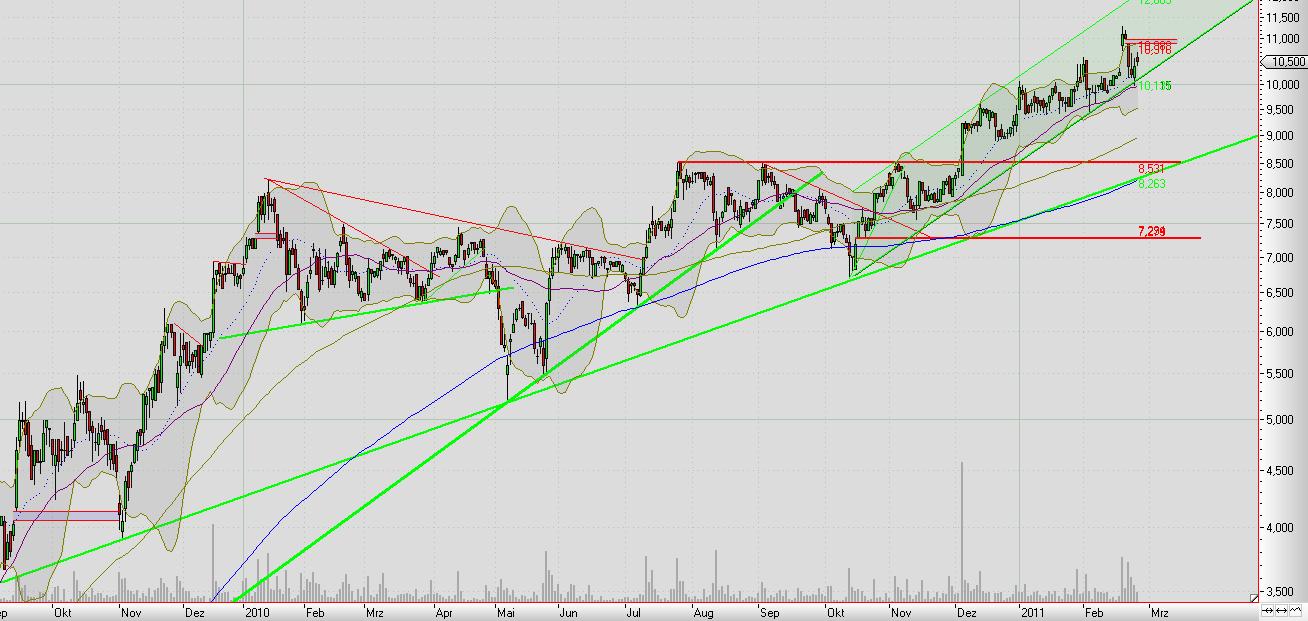 halte einen rücksetzer auf den aufwärtstrend nach dem kursverlauf der letzen tage für wahrscheinlich.