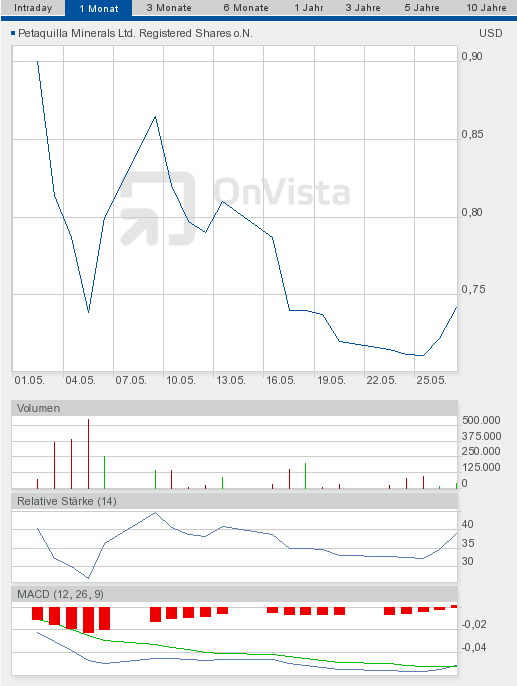 Ja zumindest durchstößt die MACD die Triggerline mal wieder sichtbar von unten, ob das zum jetzigen Zeitpunkt allerdings schon DER Indikator für eine Trendwende ist bleibt abzuwarten :) Aber wir sind ja bescheiden und nehmen jeden Fetzen dankbar an, wenn danach dann die Post abgeht...Ein großer Aufhänger ist derzeit aber mit großer Sicherheit immer noch das vermaledeite Minengesetz. Ich bin mir seeeeehr sicher, habe keinen Zweifel, das im Hinblick auf dieses Gesetz alles zugunsten von Peta laufen wird, es müsste nur endlich mal beschlossen werden und da Frage ich mich doch warum die hohen Herren in Panama sich solange feiern lassen. Die müssen doch auch großes Interesse haben seinem größten und wichtigsten Exporteur da freies Geleit zu geben. Aber wir werden sehen, ich finde der 01.06. bietet sich ja für solche Entscheidungen förmlich malerisch an. Also ich rechne noch mit ner guten Nachricht in dieser Woche- weil mir einfach danach ist :)
