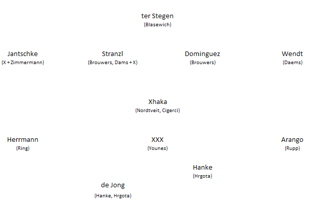 defensives Mittelfeld ist gut besetzt.. das Trio nordtveit, Cigerci und Xhaka kann rotierend eingesetzt werden.. auf den Außenbahnen ist man mit Arango und Herrmann bestens besetzt, aber in der Mitte fehl "das Gehirn".. Das kann man aus dem def. mitelfeld heraus nicht hervorzaubern! Es wäre also ein 5´er Mittelfeld von Nöten - meine Meinung.. Eine Option übrigens, die jederzeit dazu verwendet werden kann, das 1 def. Mittelfeldspieler für 1 Stürmer ausgewechselt wird und ein 4-4-2 drauß werden kann bei Bedarf! Rotieren außen kann man ohne weiteres mit Ring und Rupp und Co.. Und auch ein Younes - was wurde der noch gefeiert in der Vorbereitung passt rein.. Aber der 10´er muß her!!!