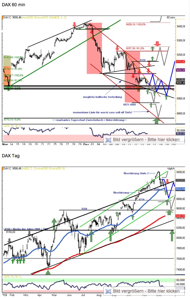 4. Nach Abschluss der bärischen Flagge Fall auf weitere Dezembertiefs, z.B. bei 8888 oder 8760 bzw. 8660