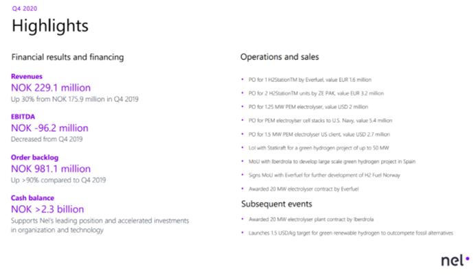 Nach dem vierten Quartal erzielte HydrogenPro einen Umsatz von 15,6 Mio. NOK, während das gesamte Jahr 2020 einen Umsatz von 26,7 Mio. NOK erzielte.