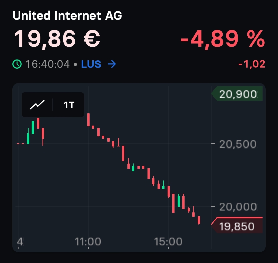 Positive Kursentwicklung ionos und 1&1 geht leider unbemerkt an UI vorbei.das sah, als alles südwärts ging,aber anders aus. Schade eigentlich,die Tage hätte man ein paar Cent gutmachen können.mit Jahresendrally war es hier wohl nichts.