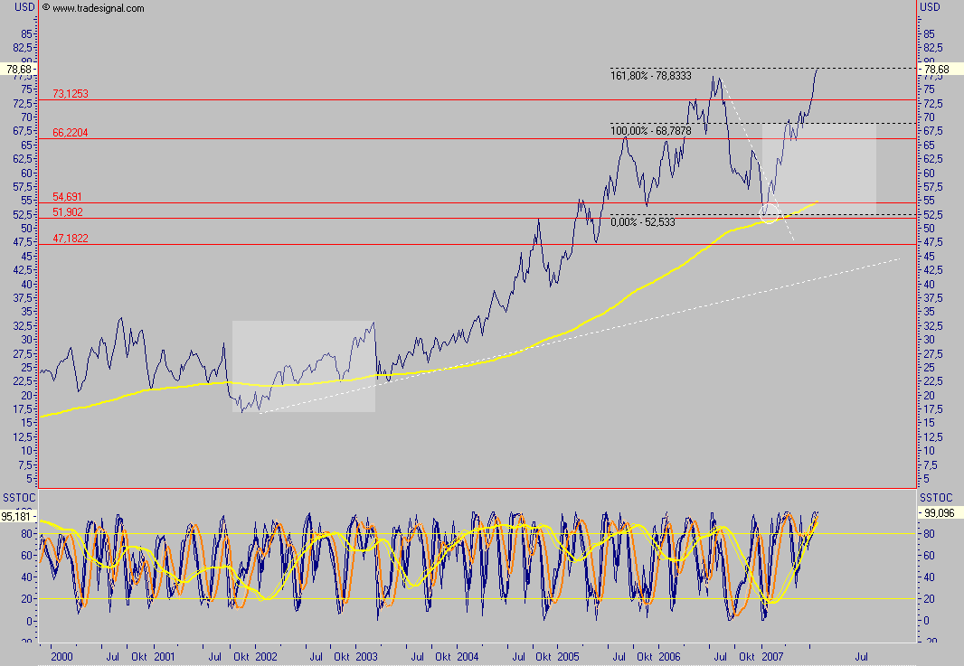Unterstützung bei 74,50; Widerstand bei 78,15.....