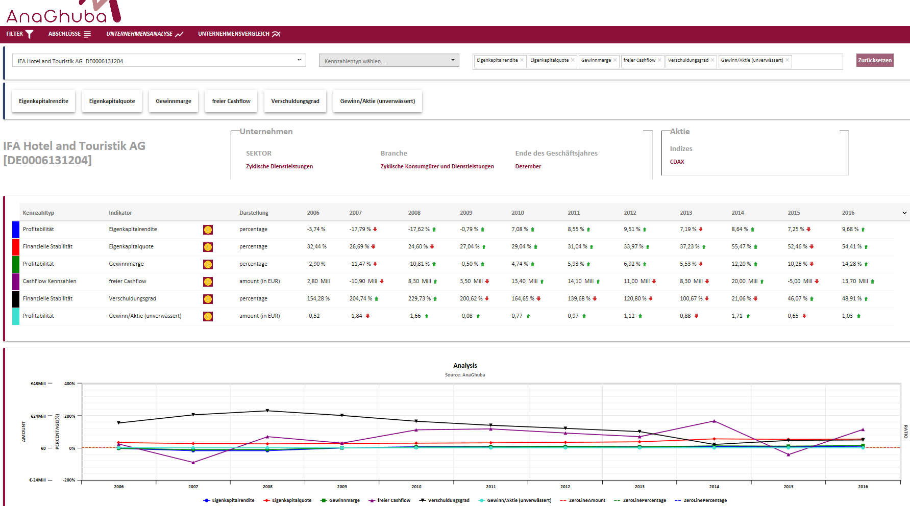 Anbei mal einige fundamentale Daten der Aktie (siehe Bild). Nahezu alle gezeigten Kennzahlen zeigen einen positiven Trend. Die Gewinnmarge (Konzerngewinn/Umsatz) liegt deutlich über 10%. Es wird freier Cashflow generiert und der Verschuldungsgrad ist deutlich zurück gegangen. Zudem hat IFA Hotel genau in den Ländern Hotels, die momentan von Urlaubern überrannt werden (Österreich, Deutschland, Spanien, Kanaren, Dominikanische Republik). Also auch aus dieser qualitativen Sicht spricht vieles für die Aktie...