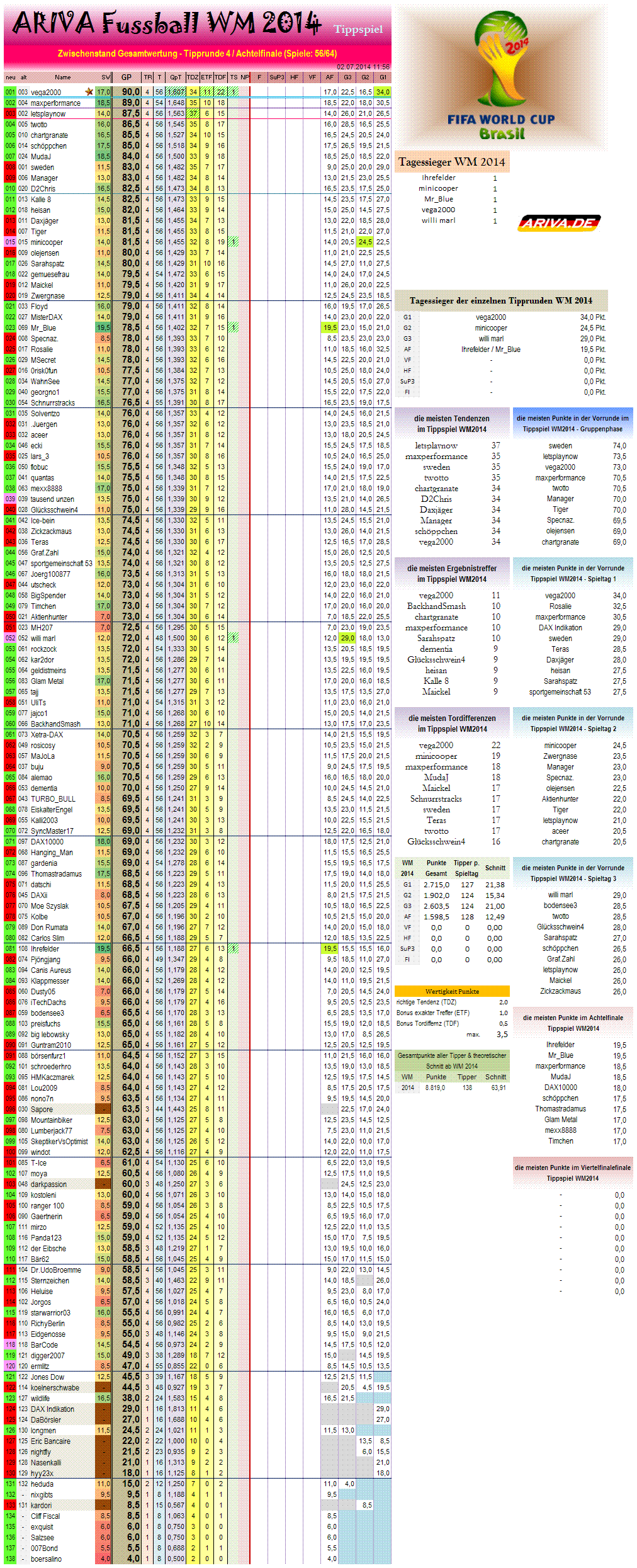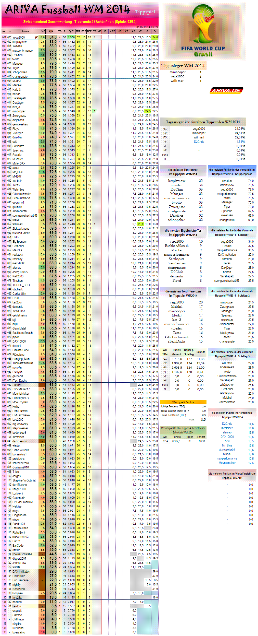 Zwischenstand Gesamtwertung WM Tippspiel.. (54/64)