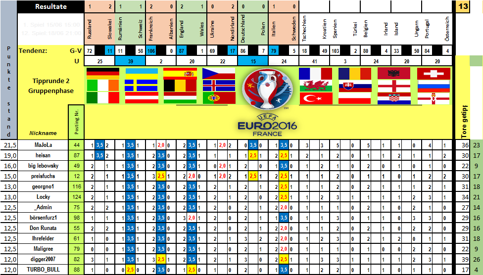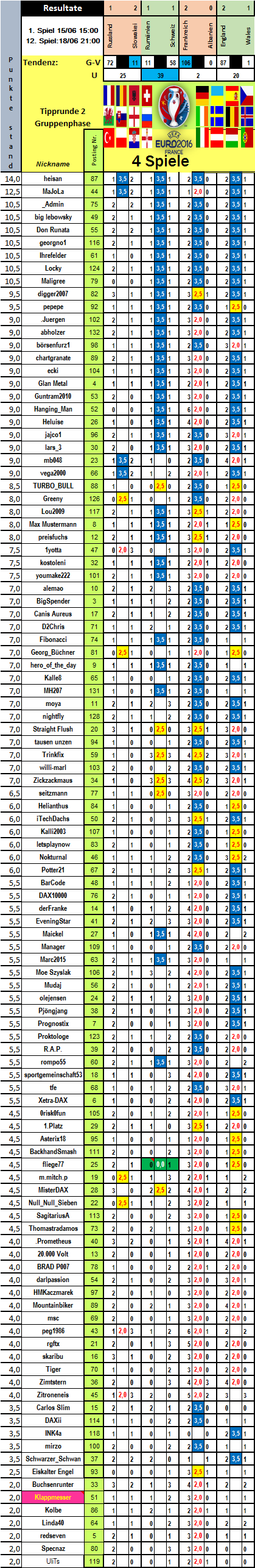 EM Frankreich 2016 - Vorrunde 2 / Änderung