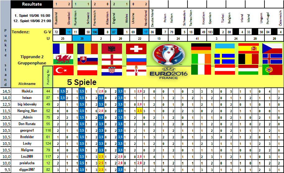 Tipprunde 2 (1. Spiel 15.06. 15:00 Uhr - letztes Spiel 18.06 21:00 Uhr)