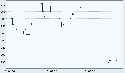 ... habe die Aktie auch eine zeitlang im Depot gehabt, ist ein recht solider Wert mit guter Dividendenpolitik. Betrachtet man die zyklischen verläufe, müsste man eigentlich einsteigen, denn Frontline war nie unter 30,-€. Da Anfang März die Dividende fällig ist (ca. 1,50$ je Aktie) sehe ich da gute Tradingchancen. Man muss aber beachten, dass die Charterraten derzeit ziemlich am einbrechen sind, auch wenn sie noch über dem Durchschnitt der letzten Jahre liegen. Der Rückgang liegt momentan bei 25% seit September 05.