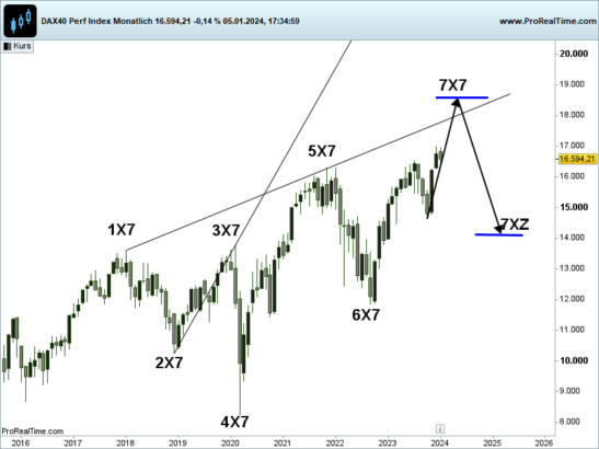 beim DAX Index liegt für dieses Jahr ein potenzielles, negatives X-Sequentials X7 Kursmuster vor.