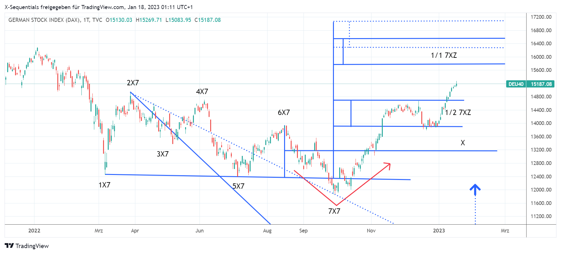 DAX Index X-Sequentials Trading Ausblick bis zur 7. KW. 2023