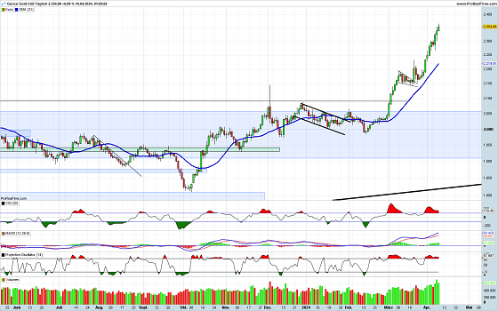 Bei aller Euphorie um die aktuelle Goldpreisentwicklung, sollte nicht vergessen werden, dass auch eine Währung wie das Gold nicht ins Unendliche steigen kann, ohne zwischenzeitlich eine Korrektur zu erleben. Der kleine Keil, der sich vor einigen Wochen gebildet hatte, ist inzwischen aufgelöst. Die aktuelle Bewegung verläuft derzeit ohne nennenswerte Rückgänge. Solche werden aber unweigerlich kommen. Wenn sie nicht zu heftig ausfallen, sind solche Rückgänge gesund für einen stabilen Trend.