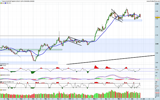 Die kleine Unterstützungszone konnte zuletzt gehalten werden, ohne dass eine dynamische Aufwärtsbewegung erfolgte. Der Preis des Edelmetalls bröckelte eher nach oben. Die zuletzt gesehene dynamische Aufwärtsbewegung wurde ebenso dynamisch wieder korrigiert. Somit steht die Unterstützungszone weiterhin im Fokus der Anleger. Die Gefahr eines Unterschreitens dieser Zone beseht weiterhin, was von den Indikatoren zum Teil unterstützt wird. Zuletzt hat es bei einigen Verkaufssignale gegeben, andere stehen noch vor Kaufsignalen. Diese widersprüchlichen Signale sind für eine Aufwärtsbewegung eher kontraproduktiv.