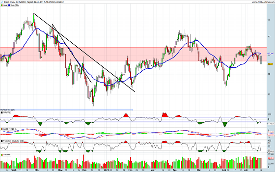 Das schwarze Gold ist nach dem gescheiterten Ausbruchsversuch nach oben, nun nach unten ausgebrochen. Dies erfolgte am Freitag recht dynamisch. Die Indikatoren befinden sich zwar bereits im überverkauften Bereich, dürften aber noch keinen Halteversuch unterstützen. Somit steht einem weiteren Schub nach unten zum Wochenbeginn nichts mehr im Wege.