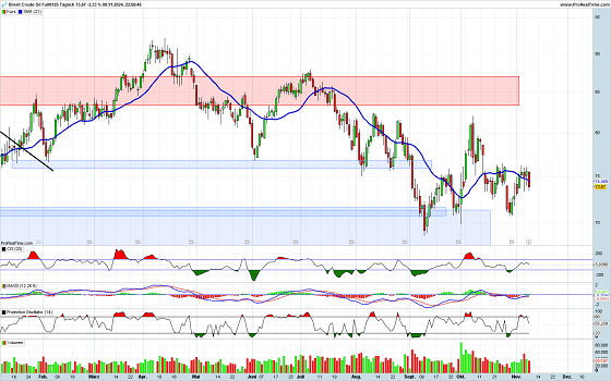Zunächst ist Öl im Bereich der Unterstützungszone wieder nach oben abgeprallt. Die alte Unterstützung, die nun zum Widerstand geworden ist, diente erneut als Wendepunkt nach unten. Zumindest gab es keinen Ausbruch nach oben und am Freitag gab der Preis wieder sichtbar nach. Da einige Indikatoren bereits wieder Verkaufssignale generiert haben, ist die Wahrscheinlichkeit gestiegen, dass nun wieder die Unterstützung bei rund 72 USD getestet wird.