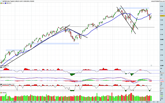 Die ersten Kaufsignale bei Indikatoren haben sich eingestellt. Somit konnte auch der S&P500 eine Stabilisierung erfahren. Auch wenn die aktuelle Konsolidierungsphase noch nicht beendet sein dürfte, zeigt die jüngste Bewegung, dass bereits jetzt schon wieder Kaufbereitschaft aufkommt. Ungeachtet dessen, sind weitere Abschläge bis in den Bereich 5.250 Punkten möglich.