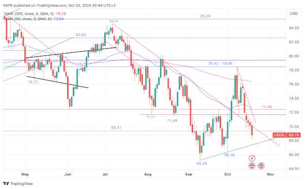 Zur Wochenmitte sah es beim Rohöl-Future der US-Sorte WTI noch eine nach einer möglichen Stabilisierung um 70 USD herum aus, im Freitagshandel rutschte der Future jedoch unter diese wichtige Marke ab und steuert nun auf einen seit dem 10. September bestehenden Aufwärtstrend zu. Sollte es dieser auch nicht richten, müssten weitere Verluste und sogar neuerliche Jahrestiefs zwingend eingeplant werden.